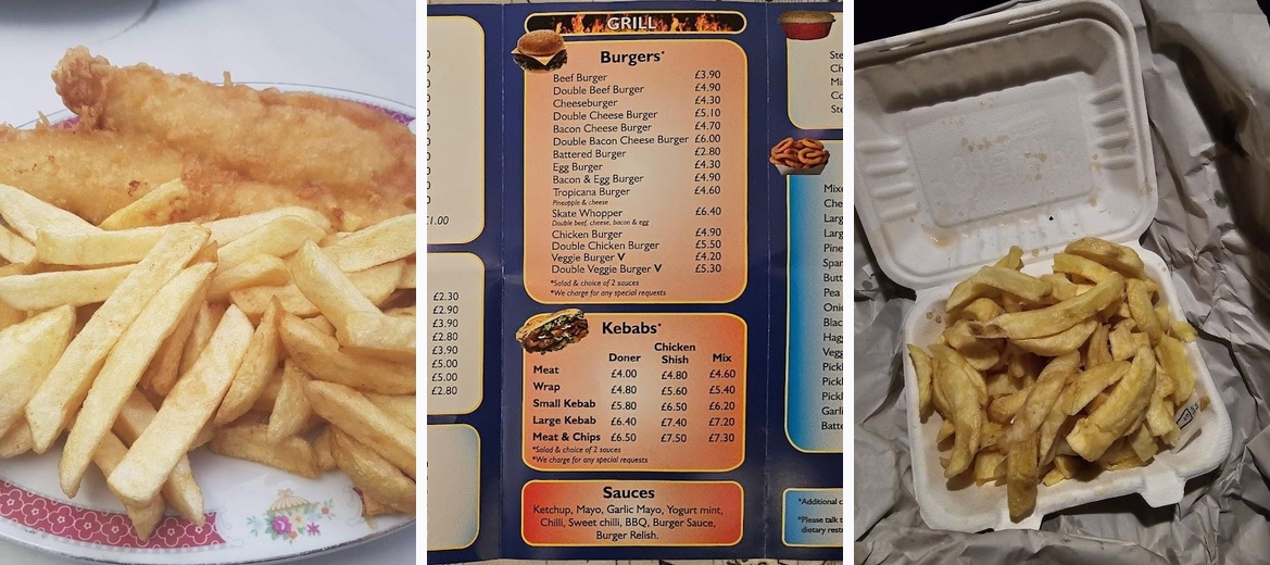 Enjoy deliciously crispy fish and chips at Skate Fish & Chips, a family-run local chippy in Poole. Indulge in generous chip portions, mouth-watering kebabs, and cheesy chips. Visit us at 206 Ringwood Rd or call +44 1202 619001 to savor the best in town!
